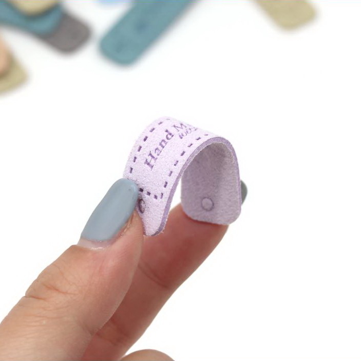 Weiche Label aus PU-Material. Fühlt sich an wie Alcantara.