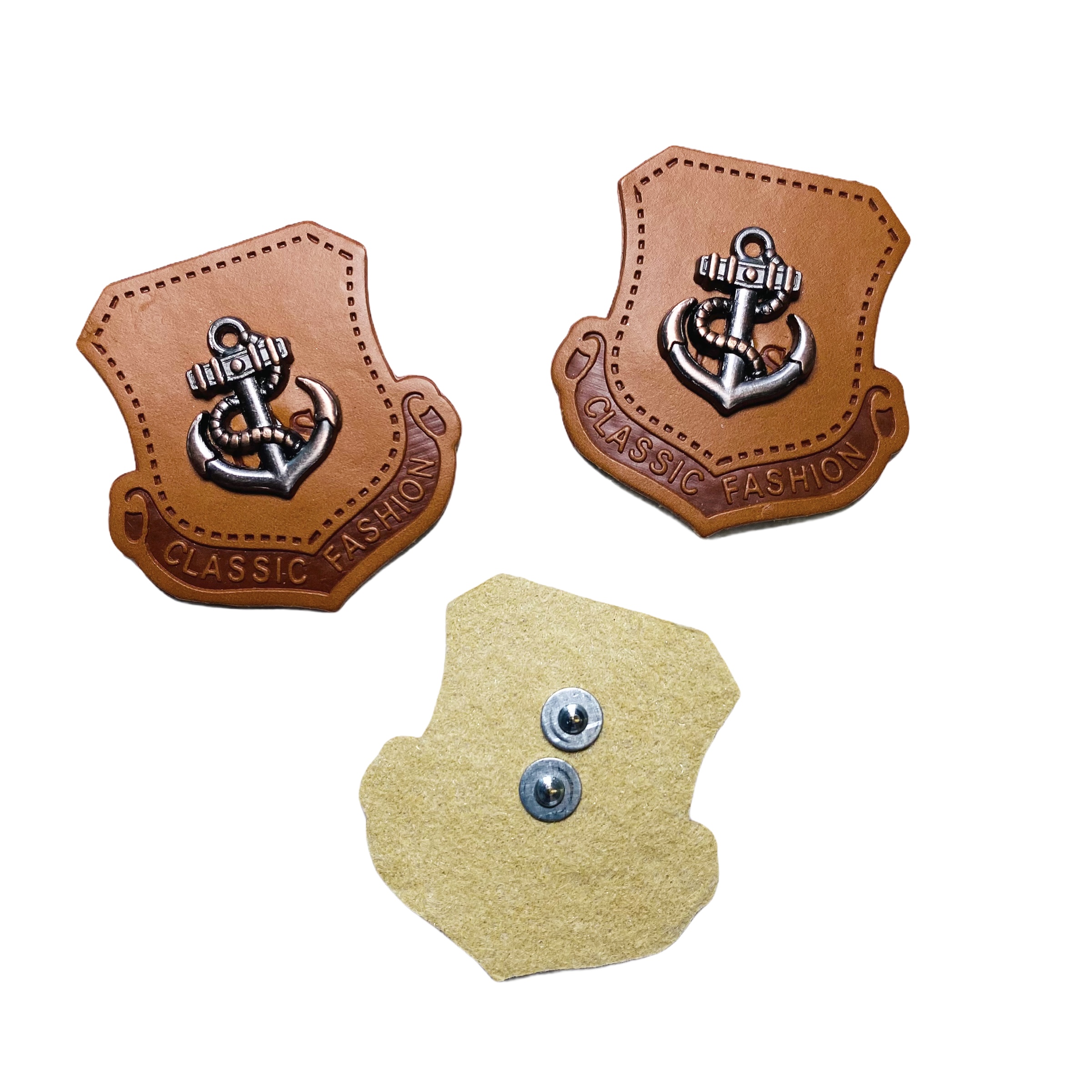 Gepräges PU Patch. Der Anker ist mit Nieten fixiertDen Patch mit Wondertape auf dem Stoff fixieren und schmalkantig absteppen